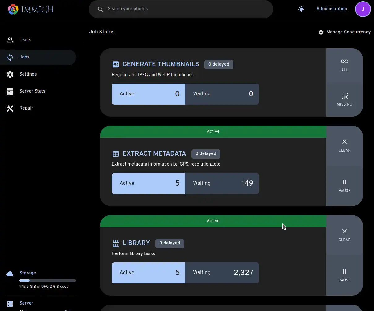 • You should see non-zero Active jobs for Library, Generate Thumbnails, and Extract Metadata.